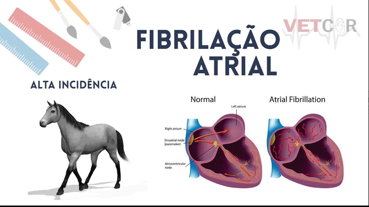 comum que esse diagnóstico animais atletas pois a identificado uma queda no desemprego em equinos de lazer normalmente os proprietários não identificam sinais de problemas cardíacos como nos pequenos animais a fibrilação atrial está dentre as cardiopatias mais comuns em equinos é uma Disritmia supraventricular em origem de remodelação elétrico e contrátil do átrio os equinos possuem uma anatomia cardiovascular que predispõe essa alteração é comum em equinos adultos como era PH lenço em cavalos de corrida com mais de 4 anos é diagnosticada através da auscultação cardíaca a qual se identifica um ritmo irregular e sem padrão normalmente não