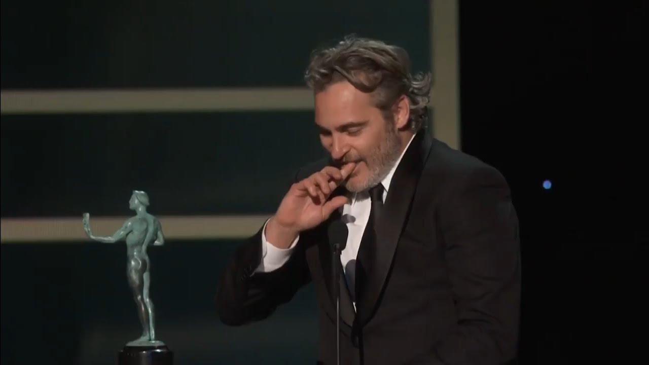 sorry that all these men can't win here are the nominees for performance by an actor in a leading role Antonio Banderas Payne and Hillary [Applause] Leonardo DiCaprio once upon a time in Hollywood Adam driver marriage story [Applause] Joaquin Phoenix Joker jonathan pryce the two popes [Applause] and the Oscar goes to Joaquin Phoenix toca this is the first Oscar and fourth nomination for Joaquin Phoenix [Applause] [Music] [Applause] I gotta move so much data too right now uh and I do not feel elevated above any my fellow nominees or anyone in this room because we share the