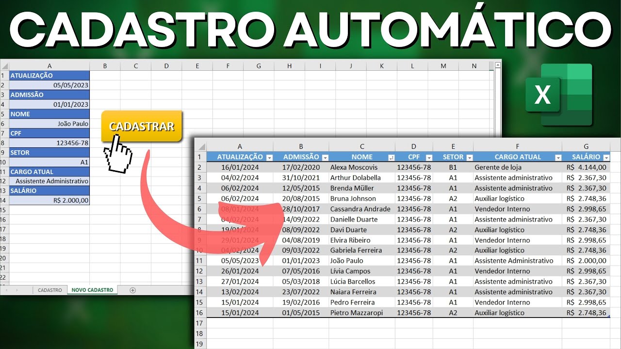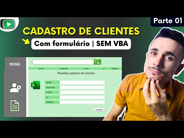 hoje eu vou te ensinar como criar uma planilha de cadastro de clientes automática como essa aqui ó veja que eu vou mudar os botões aqui ó tem um um uma parte de relatório onde você pode pesquisar digitando o nome do cliente digitando o gênero do cliente você vai achar pelo gênero você vai achar também digitando o número de telefone dele ó muito bom isso aqui você vai fazer passo a passo aqui comigo e detalhe sem usar VB tá ó você faz o cadastro aqui por exemplo aqui ó é Moisés Vou colocar aqui o telefone dele 2198 e-mail [Música] Moises mail. com uf RJ gênero masculino você começa a digitar El já aparece aqui ó clicou em cadastrar ele já fez o cadastro lá na base de cadastro aqui ó e aqui você já pode pesquisar se você divin digitar aqui as iniciais de Moisés já vai aparecer o cadastro aqui dele aqui ó se você pesquisar pelo pelo pela wef também ó RJ já vai aparecer aqui muito bom eu vou te ensinar como criar esse cadastro aqui automático sem uso de VBA 100% em Excel e ele ainda tem esses botões de navegação Ó você vai para uma guia e para outra aqui ó clicando aqui nesse menu mas primeiro de tudo essa aula é grátis e é uma aula profissional que eu se eu fosse cobrar isso aqui você seria muito caro essa aula é uma aula profissional de uma planilha profissional então já curte se o mínimo que você pode fazer é curtir esse vídeo agora curte o vídeo e se inscreve no canal Ok e manda esse vídeo para um amigo teu que precisa aprender essa dica também vamos lá vamos aprender Então vamos lá vou pegar a planilha em branco aqui nós vamos começar a construir primeiro a nossa parte de cadastro então aqui eu vou renomear vou chamar essa planilha aqui de eu já tenho uma planilha com nome cadastro então eu vou colocar cadastro e no final vou colocar um ponto só para diferenciar essa primeira coluna aqui vai ser a coluna do menu Então vou alargar ela aqui essa aqui eu vou deixar aqui mais estreitinha e aqui eu vou alargar essa essa outra coluna aqui e vou começar a colocar nossas informações por exemplo nome aí eu pulo uma uma linha e colocar telefone colocar e-mail o f e gênero Então são essas informações nome telefone e-mail F gênero essas linhas aqui ó entre uma informação e outra eu vou diminuir Ó essas linhas entre uma informação e outra eu vou diminuir elas aqui então preste atenção outra coisa que eu vou fazer alargar essa coluna aqui ó nossas informações vão ficar aqui dentro vão ficar mais alargada aqui outra coisa que eu vou fazer alargar nossas colunas de nomes aqui ó onde tem nome vou alargar para ficar tudo de uma altura só eu clico aqui na linha e vou aqui a altura da Linha e copio aqui tá 19. 8 então vou selecionar as outras linhas aqui ó segurando na tecla control selecionar todas elas vou clicar com o botão direito vou aqui em altura da Linha e vou colar 19.