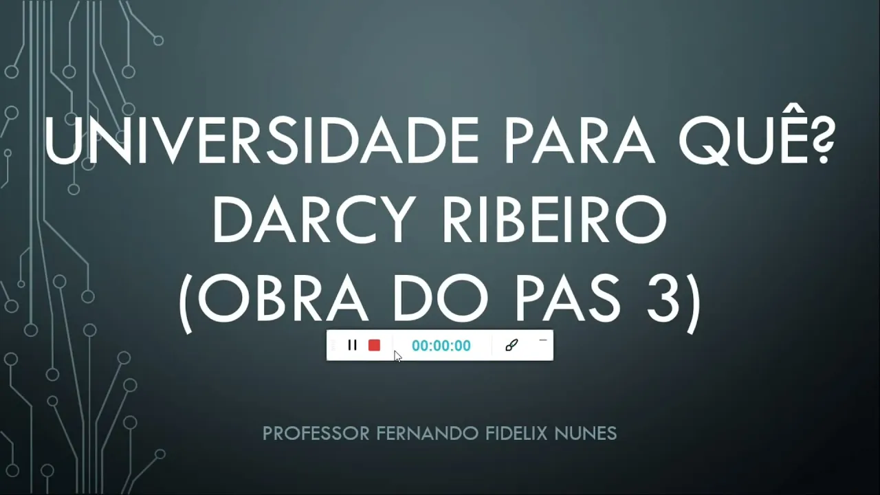 o Olá a todos meu nome é Fernando Fidelis Nunes Neste vídeo falarei com você e sobre a obra universidade para que de Darcy Ribeiro que é uma obra obrigatória para o paaes três da UnB o Darcy Ribeiro foi escritor sociólogo antropólogo educador e político bastante influente no Brasil e no exterior durante a segunda metade do século 20 ele foi um dos responsáveis pela criação da Universidade de Brasília e o primeiro reitor da instituição Ou seja é um nome muito importante na história da Universidade de Brasília em 1964 ocorre a cassação dos direitos políticos pela ditadura