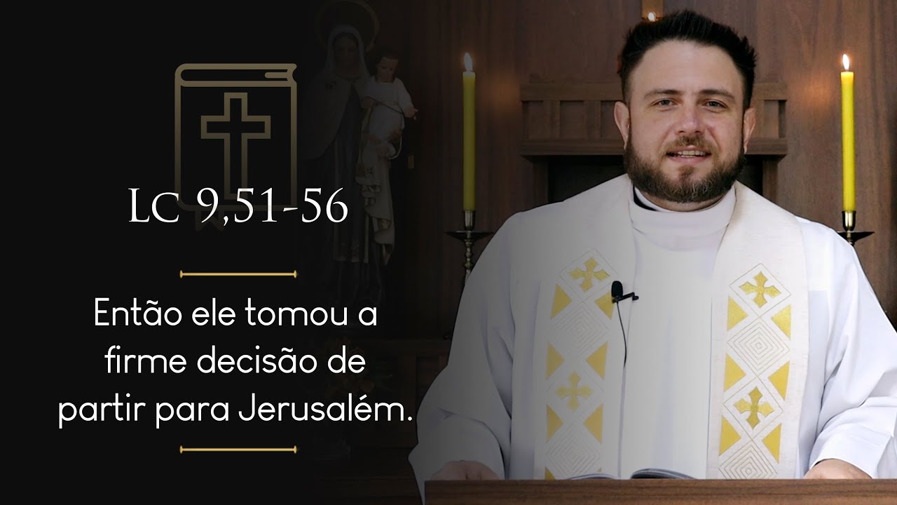 br irmãos e irmãs o evangelho de hoje diz algo muito interessante estava chegando o tempo de Jesus ser levado para o céu o tempo de ser levado para o céu e como é que se é levado para o céu né como é que vai dar esse caminho como é que se dá esse caminho de ir para o céu diz a palavra então então Jesus então ele tomou a firme decisão de partir para Jerusalém então para ir para o céu tem que ir a Jerusalém não tem como ir para o céu sem ir para Jerusalém e o que é Jerusalém na vida de Jesus Jerusalém é a cidade santa Jerusalém é a cidade do templo Jerusalém é a morte de Jesus Jerusalém é o grande fracasso humano de Jesus Jerusalém é o momento da vida de Jesus onde ele vai experimentar toda a rejeição e toda a maldade humana Jerusalém é uma grande frustração na vida de Jesus quando Jesus chega às portas de Jerusalém ele olha a cidade do alto e chora né ele vai dizer Jerusalém Jerusalém tu que matas os profetas quantas vezes eu quis te reunir debaixo das minhas asas como a galinha reúne os pintinhos mas vós não quisestes né e em Jerusalém Jesus vai morrer vai dar a vida portanto Jerusalém era o destino final da vida de Jesus e sobretudo São Lucas nos mostra o Ministério Público de Jesus como uma grande caminhada de subida e de voltinhas Jesus Vai Dando voltinhas e subindo a Jerusalém voltinhas e subindo até que chega o dia então onde Jesus toma a firme decisão de ir para Jerusalém essa é a nossa tradução tradução da maioria das bíblias mas a frase está escrita no original é uma expressão idiomática que diz assim então Jesus então ele endureceu a face em direção a Jerusalém no hebraísmo dizer assim ele endureceu o rosto significa ele se decidiu P né então o filho tá lá a filha tá lá ai não sei se eu faço administração se eu faço direito aí alguém pergunta e ele já decidiu o que ele vai fazer aí ele decidiu fal assim ele endureceu o rosto para o direito para administração ele tomou firme decisão endurecer a face fazer cara de sério de bravo tirar o sorrisinho do rosto e ir para o seu destino para Jerusalém e o nosso caminho irmãos de salvação nosso caminho de santidade também passa por endurecer o rosto por tomar firme decisão e ir para Jerusalém Jerusalém na vida de alguns é o convento Jerusalém na vida de outros é ir atrás do inimigo tentar conversar Jerusalém é a castidade parar de enrolar e decidir-se pela castidade Jerusalém na vida de outro é parar de dar voltinha e falar queer saber dízimo é todo mês é mês simes também não é ess mês não deu endurecer o rosto em direção a algo sem o qual não tem céu e nós todos enrolamos um pouquinho a gente dá umas voltas né E Deus mesmo nos permite as voltinhas no intuito de que cada um leva um tempo né cada um é um Tá mas não vai endurecer o rosto nunca nosso problema meus irmãos é a falta de de resolução né esse é o nosso problema nos falta resolução aquilo que Jesus vai dizer no evangelho quem põe a mão no arado olha para trás não tá apto para o reino e talvez a gente Olhe paraa nossa vida espiritual e para tantos assuntos da vida não só a vida espiritual e a gente sente uma tristeza até um ressentimento com Deus né a gente fala ai não vai pra frente não avança tanto que eu queria e talvez a resposta esteja em olhar para trás e ver o o tanto de oportunidade que eu tive de fazer uma resolução e não fiz Quantas vezes a gente já prometeu algo e a promessa dura quantos dias Nossa falta de resolução em direção a Jerusalém Então chegou o momento do ministério de Jesus senhor podia lá em Cafarnaum esse final de semana vai tá assim de gente né e Jesus falou ó filho quem me viu viu quem não viu não vê tô indo para Jerusalém senhor a gente podia ir lá naquela sinagoga tem uns doentes lá o senhor fazia assim uma oração pelos doentes pelos enfermos e Jesus adorava rezar pelos doentes pelos enfermos mas ele tinha que dizer para ele mesmo mas é que eu tô indo para Jerusalém que dó que dá de não rezar mais por ninguém veja a renúncia o desprendimento Jesus também sofreu com a resolução de ir para Jerusalém Jesus com certeza ao subir para Jerusalém pensava Nossa se eu for para Jerusalém eu morro quanta pregação eu vou deixar de fazer quanto bem eu vou deixar de fazer mas era o destino da vida dele era o propósito da vida dele o céu e nos levar para o céu mas para isso tem que entrar tem que ir para Jerusalém E aí Jesus entendeu o tempo de me preparar e de preparar os outros para minha ida a Jerusalém que humanamente vai acabar com tudo já tá bom o tempo de preparação você sabe meus irmãos a gente não pode ser não é bom ser né na vida não é bom ser precipitado ansioso mas tem gente que passa a vida pensando e não vive a gente precisa de um tempo para discernir as coisas né Mas você vai discernir para sempre chega uma hora que tem que parar de pensar tem que viver né chega uma hora tem que parar de pensar e tem que corresponder então Jesus entendeu o tempo a hora o momento e precisou endurecer a face para se manter firme na aquilo que entendeu naquilo que entendeu e aqui está meus irmãos parece que muitas vezes na nossa vida a gente tá se movendo e parece que a gente não entendeu porque que deu os passos que deu até agora na primeira dificuldade a gente reclama a gente murmura a gente desiste na primeira contrariedade a gente desacredita tem gente que parece um menino maluquinho A decisão foi sua foi você que diz que queria isso aí continua paciência tudo alcança né bora pra frente um pouco um pouco mais de ânimo de resiliência e muitas vezes queridos as pessoas desistem não é porque as coisas são difíceis não porque o que que é fácil na vida o que que é bom e fácil Ao mesmo tempo você conhece não tem em área nenhuma da vida o que é bom é fácil até na sua cozinha toda comida que é muito fácil de fazer geralmente não é boa