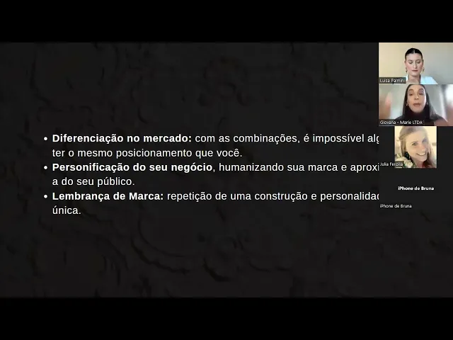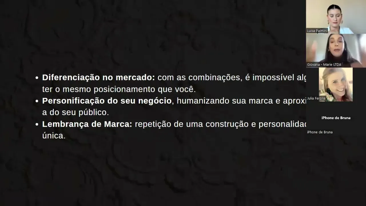 pedir para vocês ficarem atentas Ao microfone porque senão não atrapalha aqui o o processo da aula por exemplo agora tá um burin enorme assim é L conhec mas não sei porque toda vez que a descobrir quem é Charlene microfone tá aberto foi agora foi gente foi foi vamos lá personificação do seu negócio quando a gente utiliza essa estratégia de combinação nós humanizamos a nossa marca e isso é um ponto muito Importante pessoal por hoje as pessoas conectam com pessoas e cada vez mar até mesmo institucionais estão buscando humanizar a marca para ter esse ponto de