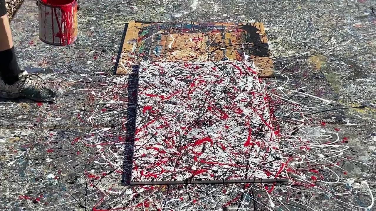 but really it's not about the Jackson Pollock painting and really what you look at a lot of it has to do with the action of maining the paint making the painting and what Pollock talked about in his interviews is that for him painting the piece was as much as the piece itself and I think that that's very that makes a lot of sense especially when you make this style of painting so it's not about just a bunch of trips and lines and splashes it's more about the work that you're putting in to make it so