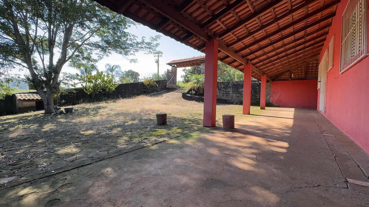 já já eu mostro PR vocês que tem um cachorro grande ali solto né dá um pouquinho de medo melhor não arriscar enfim vamos lá aqui er as baias da propriedade são quatro baias duas aqui duas lá atrás você pode fazer um can o cachorrinho tá ali agora só para el não ficar pulando na gente tem um grandão aqui ó tomar um cuidado né e eu vou apresentar tudo PR vocês já volto aqui apresentar essa suí externa e são dois dormitórios sendo uma suí lá dentro da casa também mas vamos lá conhecer Comigo tudo todos os
