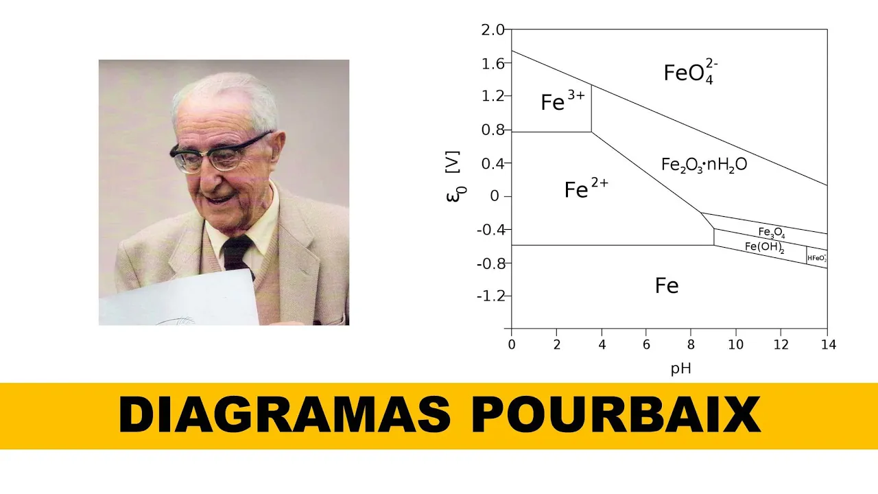 Hello everyone, this is Professor Thiago and in this video we will present the deduction of the Pourbaix diagram for iron. Pourbaix diagrams are diagrams of electrical potential by pH that indicate the regions where the metal is immune, passivated or corrodes in pure water. These diagrams are called Pourbaix after the Belgian chemist Marcel Pourbaix, who developed and popularized them.
