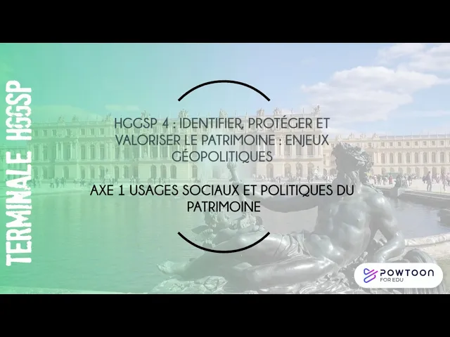 [Musique] [Applaudissements] [Musique] bonjour à tous et bienvenue dans cette nouvelle vidéo du programme d'histoire-géographie géopolitique sciences politiques de terminale nous allons poursuivre l'étude du quatrième thèmes identifiés protéger et valoriser le patrimoine enjeux géopolitiques et aujourd'hui nous allons voir les usages sociaux et politiques du patrimoine vous êtes prêts tout le monde a pris son petit guide de versailles racontée par stéphane bern alors c'est parti dans son livre versailles le pouvoir de la pierre le grand historien joël cornette commence ainsi versailles fait partie de ces lieux de mémoire qui ont forgé l'identité de la nation france faire