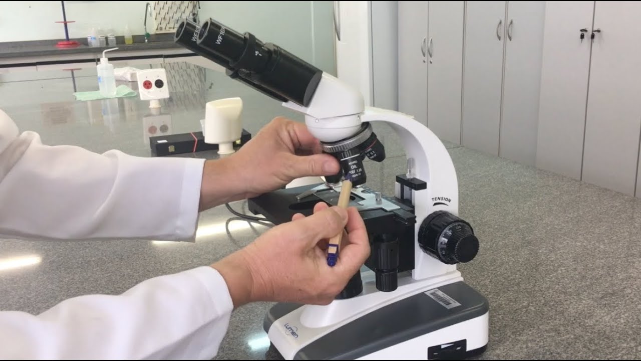 gente utiliza esse microscópio aqui basicamente pra gente analisar esses tipos de lâmina tá lâminas coradas por exemplo com grampo a gente observar a técnicas de colorações e analisar bactérias por exemplo sou fungos a gente utiliza para analisar de cá né que é a pesquisa do bacilo álcool-ácido resistente né que é o bacilo da tuberculose a mycobacterium tuberculoses curada com Nilce eu utilizo por exemplo esfregaço sanguíneo na Hematologia e utilizo por exemplo na citopatologia do cérvicovaginal então gente utiliza para analisar o Papa o e outras secreções diversas aí Tá além dessas lâminas normais eu também posso
