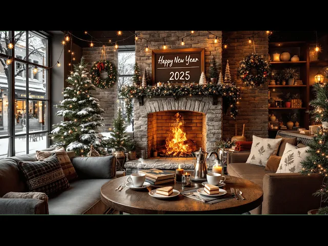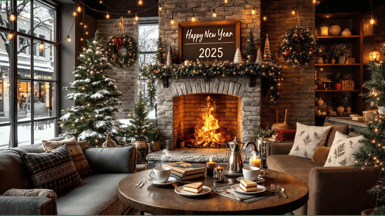 Winter Coffee Shop Ambience with Smooth Jazz Music 🎄🎀Christmas Ambience & Fireplace for Relax, Study
