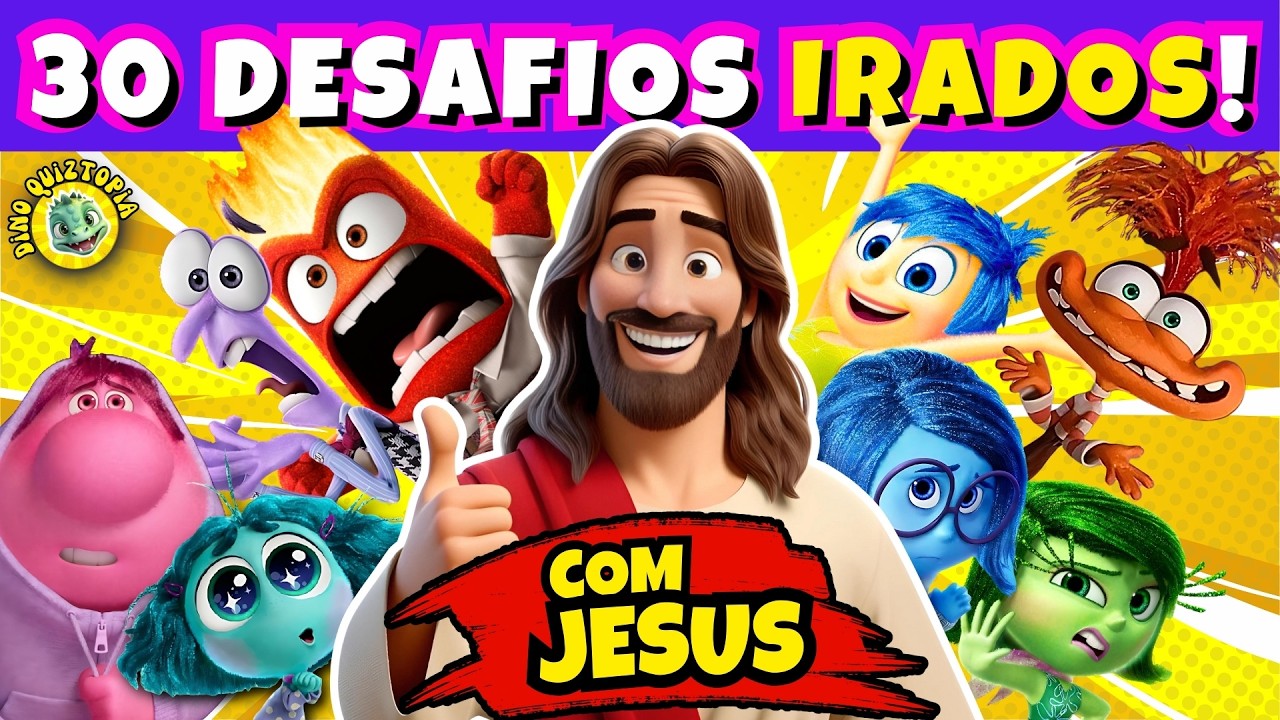 o desafio para perguntar se você ama Jesus se você ama Jesus comenta aqui nos comentários a frase eu te amo Jesus dessa forma você deixa o baby Dino e Jesus muito felizes vamos voltar para o nosso desafio Bora lá número 16 O que Jesus sentiu quando foi tentado no deserto escolha a emoção que mais representa Jesus nessa situação Jesus sentiu medo mas ele Manteve a a fé e a coragem para vencer o [Música] inimigo número 17 Qual música Jesus está ouvindo será que é rock hip hop música eletrônica ou música religiosa Jesus está ouvindo louvores