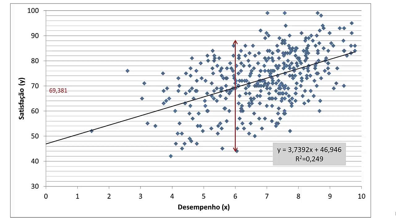 nosso modelo seja aceitável na verdade pessoal isso é um erro comum que as pessoas cometem em achar que o é o quadrado tem que ser alto para o nosso modelo ser válido na verdade não existe um valor mínimo por é o quadrado para que nosso modelo seja aceitável isso não existe o é o quadrado só significa que se ele for muito baixo essa nossa previsão aqui está sujeita a uma alta variabilidade porque apesar de eu ter essa previsão de 7,24 eu sei que cada cliente individualmente vai dar uma nota maior ou menor do que essa