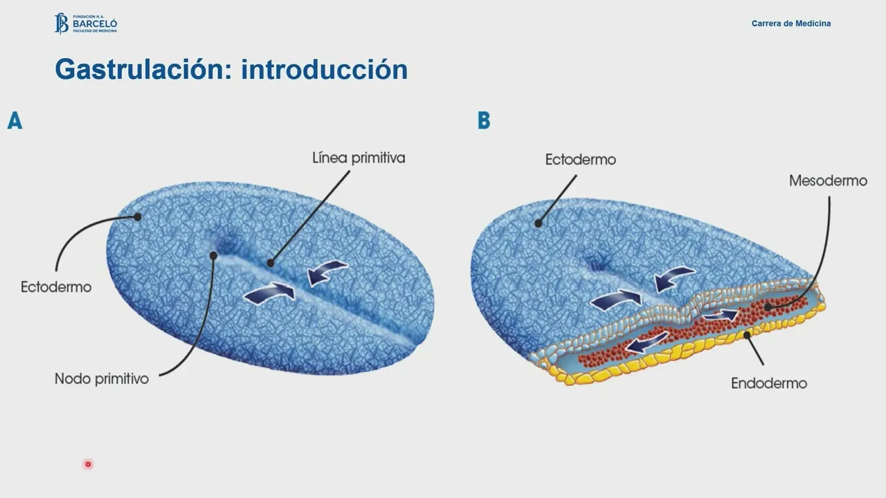 Bueno buenas tardes Vamos a continuar con la segunda parte de lo que era la unidad 3 en el área de embriología que Estuvimos viendo lo que era la segmentación que es la primer semana del desarrollo segunda semana y hoy nos toca la tercer semana del desarrollo los objetivos de nuestra clase va a ser definir el proceso de la gastrolación y Determinar los cambios que ocurren durante la tercera semana del desarrollo a nivel del saco coreano vamos a dividir la clase en dos partes en una primera parte vamos a ver lo que ocurre a nivel del