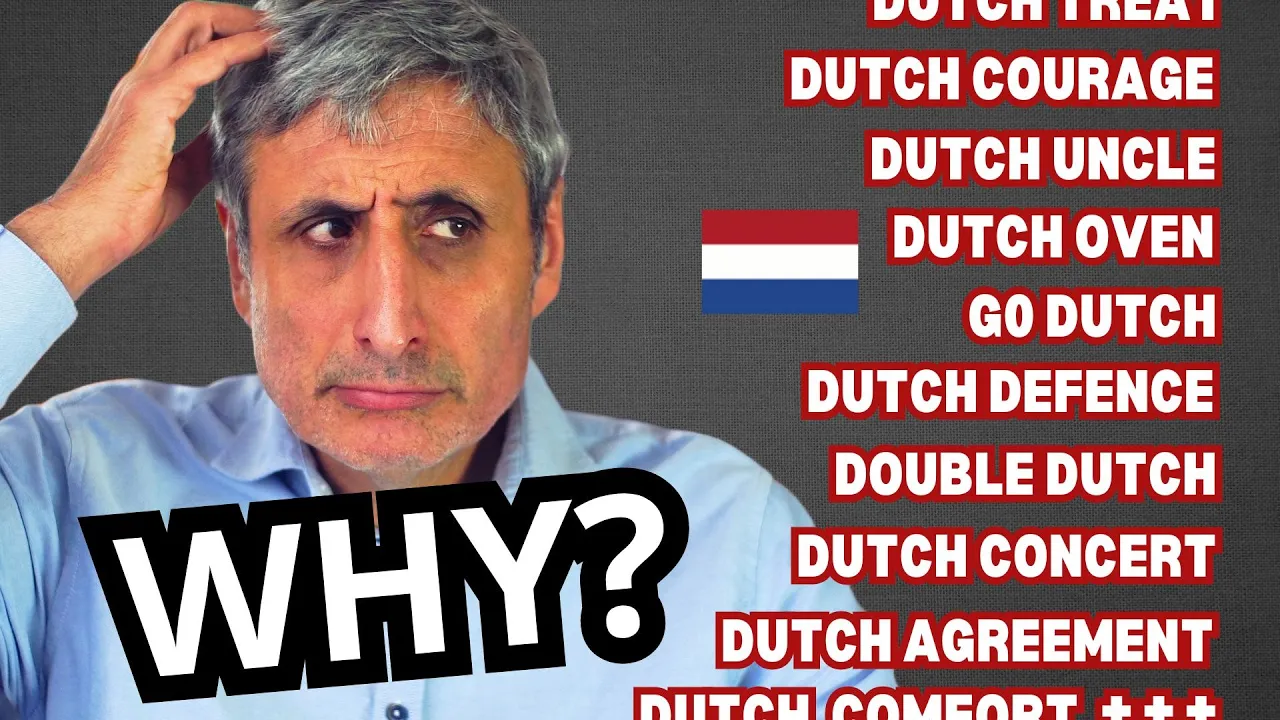 quote from the book culture shock Netherlands a survival guide to customs and etiquette we say Dutch uncle because the Dutch are and I quote practical direct outspoken stubborn well organized blunt and thinking they are always right really that's the kind of stereotypical nonsense that I can't stand we simply say Dutch uncle because it's contrary to what you'd expect from an uncle that's why we use Dutch in all these Expressions nothing to do with bad tempered Dutchmen Dutch Treat was first recorded in the 1870s that's 100 years after the wars with the Dutch I could go