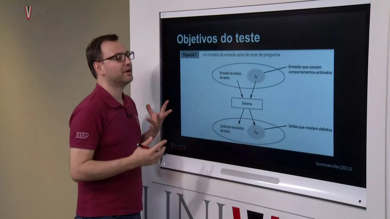 [Música] o [Música] olá eu sou professor marcelo fantinato esta disciplina de engenharia de software do curso de engenharia da computação da univesp vamos agora com a aula número 18 anos e se tratar de teste de software teremos três aulas três vídeo aulas em que nós vamos tratar de teste de software começando com uma visão geral do assunto teste de software nós estamos tratando é do processo de desenvolvimento de software ciclo de vida de desenvolvimento de software já tratamos diferentes etapas do desse ciclo de vida começando com engenharia de requisitos modelagem projeto de de software chegamos