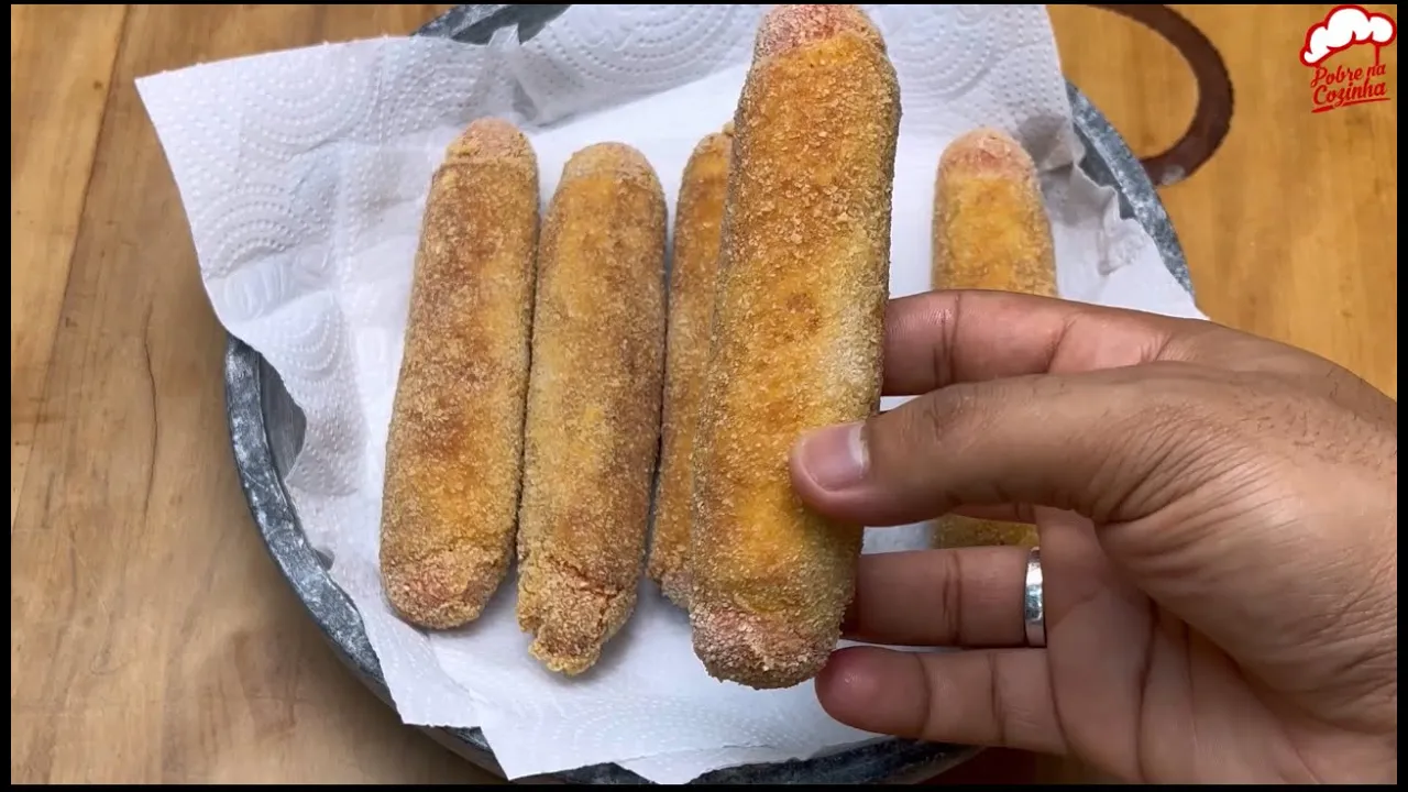 de um garfo Vamos bater tudo isso muito [Música] bem vamos agora pegar o nosso enroladinho passar nos [Música] ovos e agora vamos finalizar passando na farinha de [Música] Rosa [Música] feito isso vamos pegar e vamos levar para fritar em óleo quente assim que dourar é só retirar colocar aí um papel toalha para [Música] escorrer e Olha só pessoal esse salgado fica incrível super rápido fácil e delicioso façam na casa de vocês eu tenho certeza que todos vão amar eu espero que vocês tenham gostado essa foi mais uma receitinha aqui do pobre na cozinha aquele forte