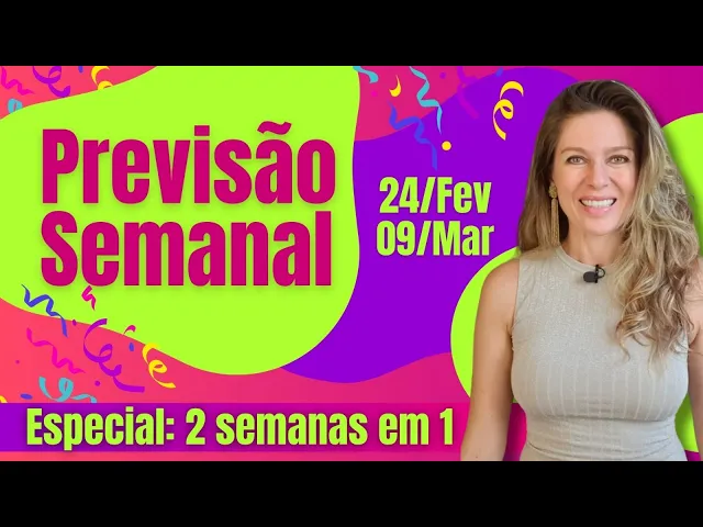 Olá pessoal muito bem-vindos de volta no vídeo de hoje eu faço uma previsão semanal estendida e isso porque a gente tem o carnaval aí pelos próximos dias portanto hoje eu falo sobre o intervalo que vai de 24 de Fevereiro a 9 de março são duas semanas em uma e no vídeo de hoje eu contemplo alguns dos posicionamentos planetários mais importantes embora a gente vá se ver sim sem sombra de dúvidas né nos próximos dias dessa semana na próxima quarta e quinta-feira dessa semana e na outra também então a gente vai falar sobre os aspectos em
