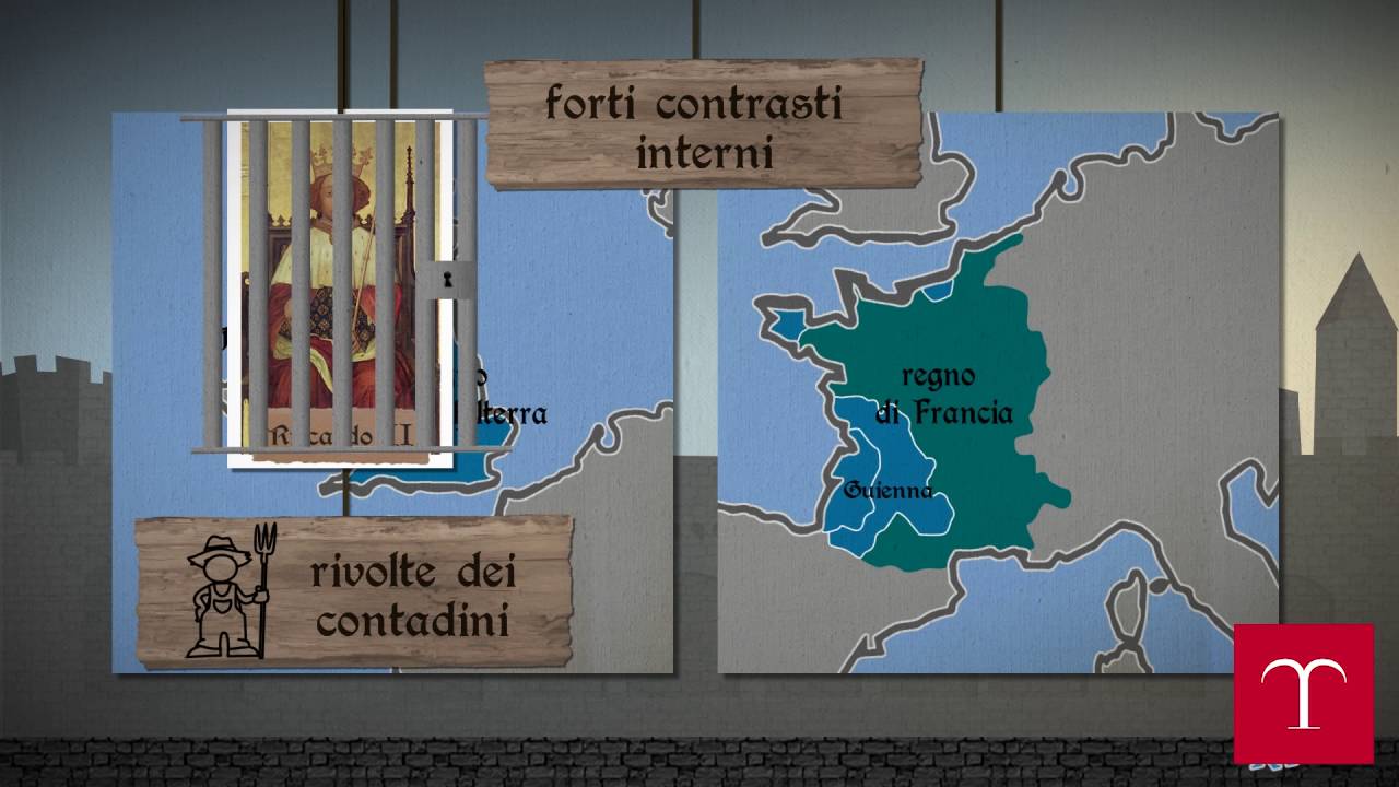 parte di filippo sesto dei feudi della francia settentrionale che erano proprietà dei sovrani inglesi da secoli e il rifiuto di edoardo iii re d'inghilterra di diventare vassallo di filippo iii di valois re di francia a dare il via alle ostilità e proprio edoardo iii che assedia la città di cambia senza successo a partire dal 1339 dal 1343 al 1.345 assistiamo a una sorta di tregua interrotta dalla vittoria da parte degli inglesi nel 1346 a crisi e nel 1356 a poitiers devastano il suolo francese e catturano giovanni ii re di francia edoardo iii rinuncia ai diritti