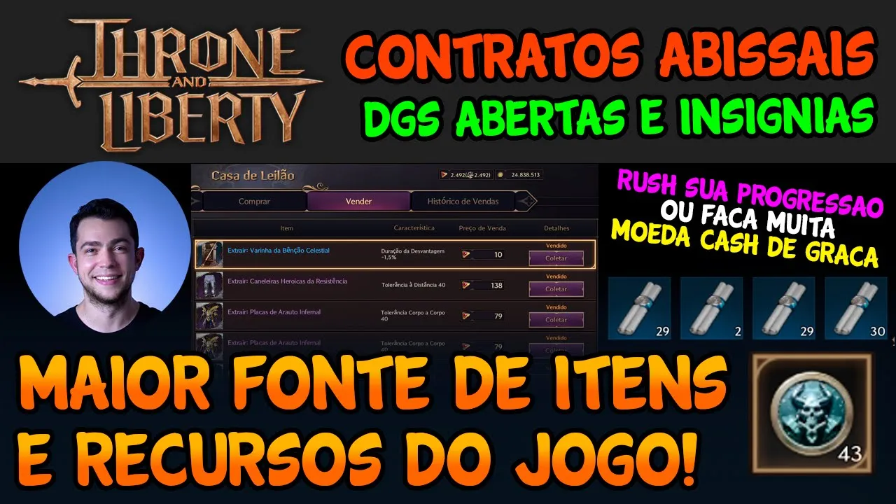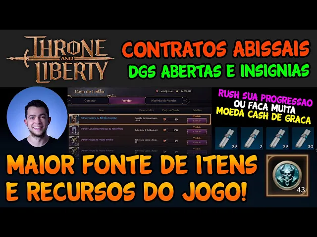 Fala galera beleza Marco V aqui para mais um vídeo de trone Liberty e nesse vídeo a gente vai falar sobre contratos absis que te rende muita recompensa boa esse monte de item Azul alguns itens roxos né entre outras Recompensas aqui na casa de leilão tá em manutenção justo porque eu ia mostrar agora mas tem um monte de coisa minha vendendo já vendida tá fica comigo então que eu vou te explicar tudo sobre o contrato abissal que é diferente dos contratos normais que tá acostumado e lembra Sempre coloca a na Twitch nós está em live agora