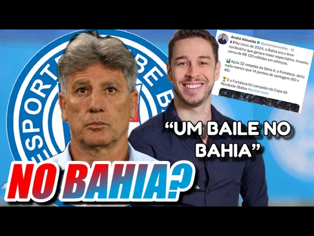 Renato Gaúcho por vários vários indícios que eu vou trazer aqui para vocês durante o vídeo e eu fui buscar informação antes de trazer simplesmente Ah porque o Bahia está procurando Renato Gaúcho para poder trazer tudo aqui já mastigadinho para vocês e a gente vai falar sobre isso no vídeo de agora outra coisa também que eu quero trazer nesse vídeo é um Jornalista cearense ele faz a comparação sobre o Bahia ele disz que o Baí era o time Nordestino que mais gerava expectativa E aí ele compara com Fortaleza como sempre jornalistas e torcedores eh dirigentes lá