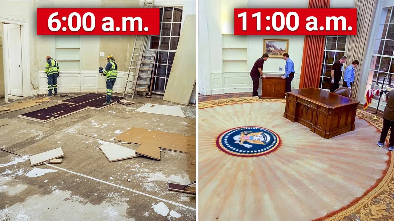 this is how you transform the White House from one president to another make America powerful again moving out cleaning repainting and so much more is a Herculean task however the roughly 100 members of The White House staff assigned to these duties have less than 6 hours to make it all happen worse yet any simple mistake could turn the president's first day in office into a disaster in a number of ways packing of the White House is much more complicated than renting a U-Haul and a trailer putting all your junk in it and slapping the ratchet