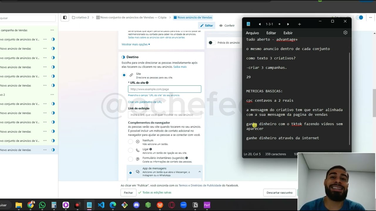 000 limpo no meu bolso investi nso aqui ó 200 por dia então seria bom seria né mas eu quero mas eu sei que dá para escalar então para essa parte dois o que que eu vou fazer aqui pessoal eu vou manter não vou escalar ainda vou só mostrar um pouco aqui eh das campanhas aqui para você deixa eu deixa eu abrir aqui aqui as campanhas aqui não tá marcando aqui tá marcando prejuízo né nessas aqui mas na verdade não tá é que se você olhar aqui ó quatro vendas não tradas então não foi marcada aqui na campanha tá ela veio as vendas vieram aqui pro resumo marcou aqui ó Mas não marcou aqui dentro da campanha não atribuiu a campanha que saiu à venda por isso que aqui tá marcando tá marcando prejuízo mas na verdade não teve prejuízo porque eu já vi lá dentro da hotmart que saiu venda dessas campanhas aqui ó que estão no negativo então aqui também é lucro todas essas campanhas por isso que eu mantive e como que eu sei que saiu dessas campanhas porque eu uso o o código utm nessas nesses anúncios então toda venda que sai lá dentro da hotmart eu consigo Identificar qual foi a campanha que saiu venda e qual foi que não saiu tá mostra o nome certinho da campanha então eu consigo ver aqui mesmo que não marca não atribui aqui às vezes tá então por isso que eu tô mantendo aqui e que que eu vou fazer simplesmente manter aqui pessoal tá simplesmente manter se eu quisesse escalar como que eu faria aqui eu poderia vir aqui ó colocar aqui eh de 911 eu já subiria aqui para pelo menos 191 tá 191 publicava ia deixar rodar até meio-dia por aí se tivesse saído mais venda eu ia aumentar mais ia botar já para 291 tá ou para 20. 000 não 291 e ia deixar o pa autorar até mais tarde tá então eu faço essas otimizações ao longo do dia de orçamento e tudo mais eu só não duplico e publico novas campanhas durante o dia tá por isso que eu porque fica ruim cara se você duplicar a campanha no meio do dia não vai performar bem provavelmente é prejuízo tá E aqui o nosso bloquinho de nota que vocês gostam né vamos lá O que que a gente vai fazer manter o lucro Qual que é o objetivo para você entender meu objetivo aqui nesse momento é gerar caixa com o lucro da própria operação É isso que eu tô fazendo tá não vou a foit não vou com muita cede a pote poderia enfiar grana aqui de outros negócio meu mas não vou tá não vou vou na prudência a oferta tá boa e tem muito potencial ainda tô na maciota e eu vou começar a sacar esse dinheiro todo aqui né já Tô sacando uma parte mas tem muito ainda para liberar na hotmart E conforme eu for sacando eu tô embolsando vou fazendo o meu caixa e aí mês que vem e a gente entrou já na verdade fevereiro esse mês eu já vou conseguir dar mais um escalada tá tudo na prudência tudo com tranquilidade responsabilidade tá porque eu tenho um negócio online e para você ter um negócio online que fatura bem todos os meses isso é o mais importante pessoal tá o mais difícil na internet é a Constância muita gente estour fica rico um mês depois some no outro Acontece muito por falta falta de prudência tá Israel mas empreendedor não tem que arriscar tem e eu arrisco eu arrisco muito faço muitas atitudes de coragem por isso que eu tô aqui hoje mas eu sei a hora de ter dar um passo atrás às vezes dar um passo atrás é dar dois lá na frente e aqui eu sei que vai ser isso entendeu é isso é planejado aqui eu não tô parando por conta de medo não tô segurando o orçamento por conta de medo tô segurando aqui por prudência eu tô segurando aqui por estratégia eu sei o que eu tô fazendo entendeu E o seguinte a venda sai em 15 dias mas por exemplo eu vendi vamos supor 50. 000 nos últimos 30 dias eu vou receber essas vendas que eu fiz em 15 dias que é o prazo de saque por exemplo a venda que eu fiz dia um eu recebo dia 15 mas e a venda que eu fiz dia 30 e a venda que eu fiz dia 15 do mês eu vou receber só dia 30 e a venda que eu fiz dia 30 eu vou receber só dia 15 do outro mês então assim eu não recebo as vendas que eu fiz dentro de um mês no mesmo mês eu vou receber ao todo só no outro mês então na teoria Eu precisaria de mais de 90.