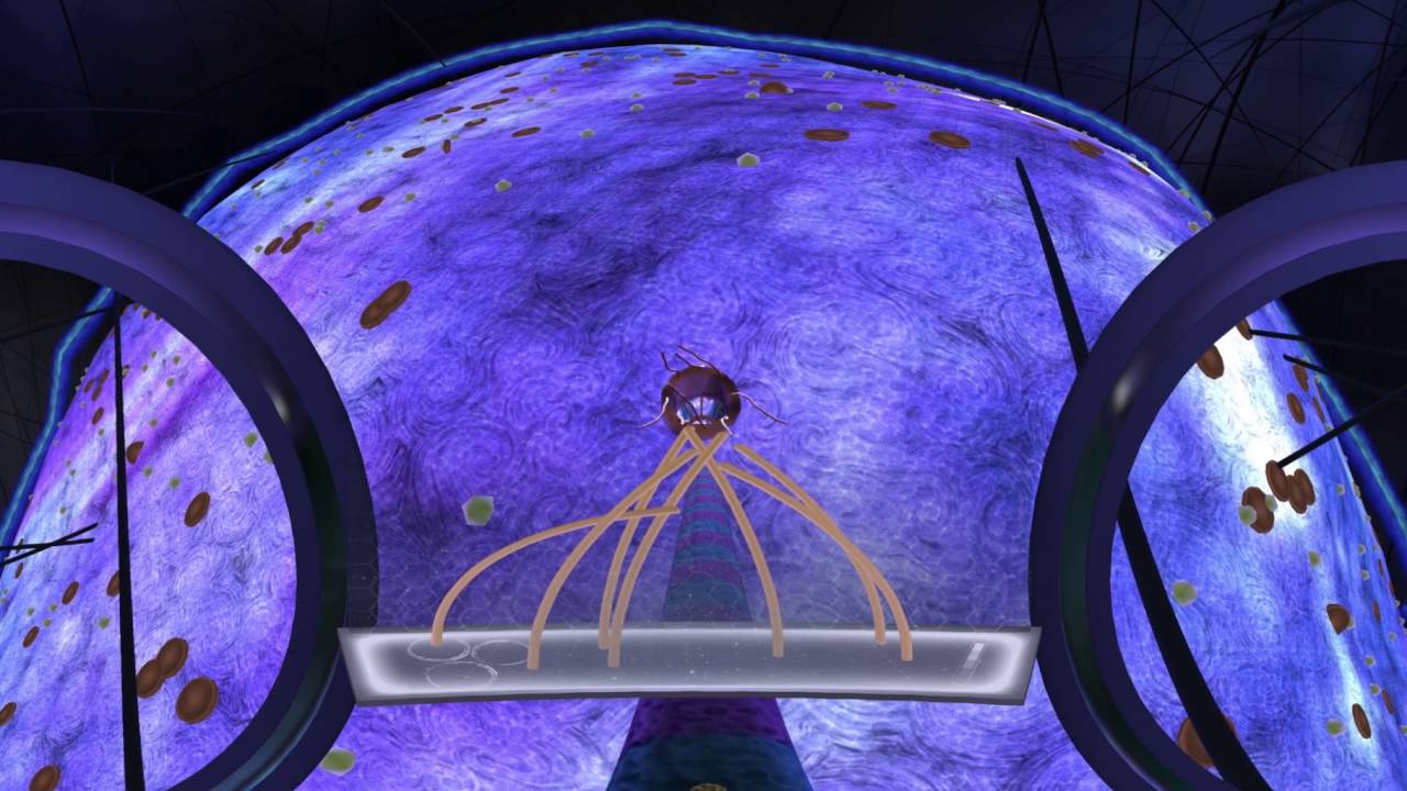 site of many different processes inside of a plant cell found on the endoplasmic reticulum a smaller bodies called ribosomes these are responsible for making proteins the building blocks of a cell you are heading through a nuclear pore and into the plant cell nucleus the nucleus is home to the cell's DNA a long string like molecule the DNA contains a sequence of information that controls all the cell's activities the Golgi body which is made up of many membrane bound sacs collects packages and distributes proteins and other molecules made in the cell the cytoskeleton or cell skeleton