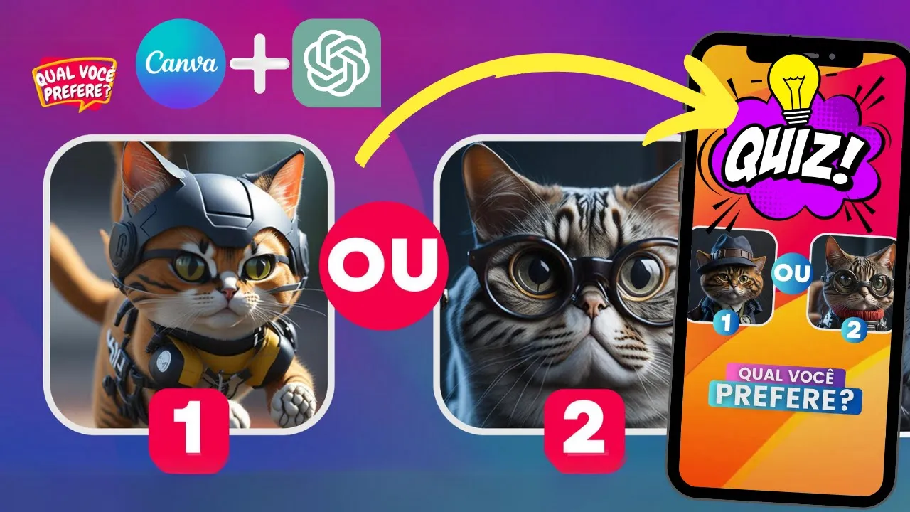 é o seguinte para você que gosta de fazer vídeo Quiz pro tiktok pro YouTube no vídeo de hoje vou compartilhar com você alguns modelos aqui no canva eu vou mostrar aqui como que a gente faz para alterar aqui é bem simples tá é arrastar e soltar e vou mostrar para você onde você vai conseguir esses modelos para você tá utilizando aí também esse modelo aqui é o modelo Qual você prefere aqui são a gente pode tá colocando foto de animais eh de comidas um exemplo aqui para alterar esse aqui só a gente vir aqui no