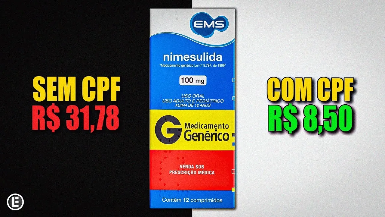 Uma caixa com 12 comprimidos do medicamento genérico custava R$ 31,78 na RaiaDrgasil na cidade de São Paulo. Mas fornecendo o CPF , o preço caía para 8,50, totalizando um “desconto” de 73%. Uma rede de hospitais privados pagou pela mesma caixa de nimesulida R$ 4,39.