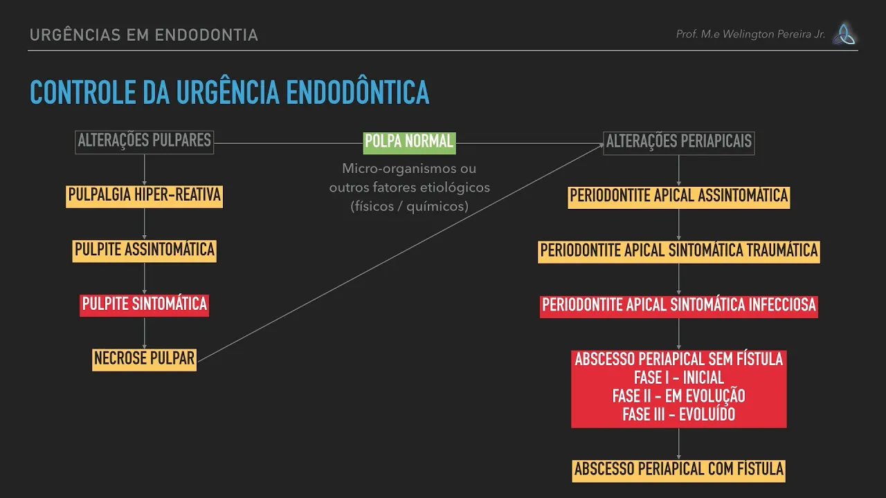 Olá aqui é o Wellington novamente para mais uma aula de endodontia e hoje vou falar sobre o urgências em endodontia certamente dentre as atribuições do cirurgião-dentista uma das mais nobres importantes refere-se a promoção do alívio da dor do paciente a dor pode ser definida como uma experiência desconfortável e emocional associada com dano tecido ao atual ou potencial ou descrita em termos de tal dano é uma experiência de natureza multidimensional e é sempre subjetivo e associado com fatores emocionais E cognitivos hoje é plenamente aceito que a dor é muito mais do que a meratividade no nosso
