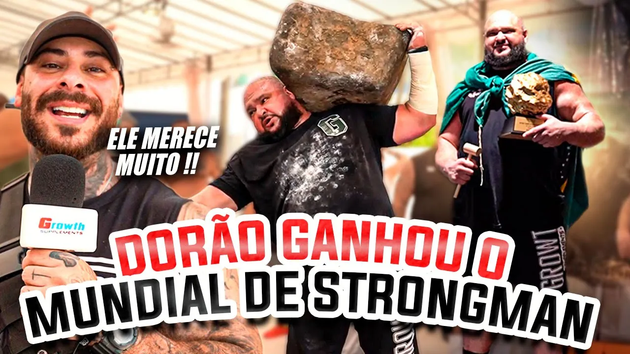 irmão campeão e a atras de 200 kg subiu meus senhores e o a taça de campeão mundial vai ser levada para nosso Brasil vai estar lá na área 51 vai estar na estante da casa de dorão e Carol Ladies [Música] [Aplausos] dorão se consagra campeão mundial de strongman aqui em Singapura a vida é uma caixinha de surpresa né dorão nossa nem fala o ano passado aí o jo tava presente comigo lá tão triste em em Portugal cara eh sair de lá numa nona colocação bem ruim e eu não entendia porqu tava tão bem preparado Mas