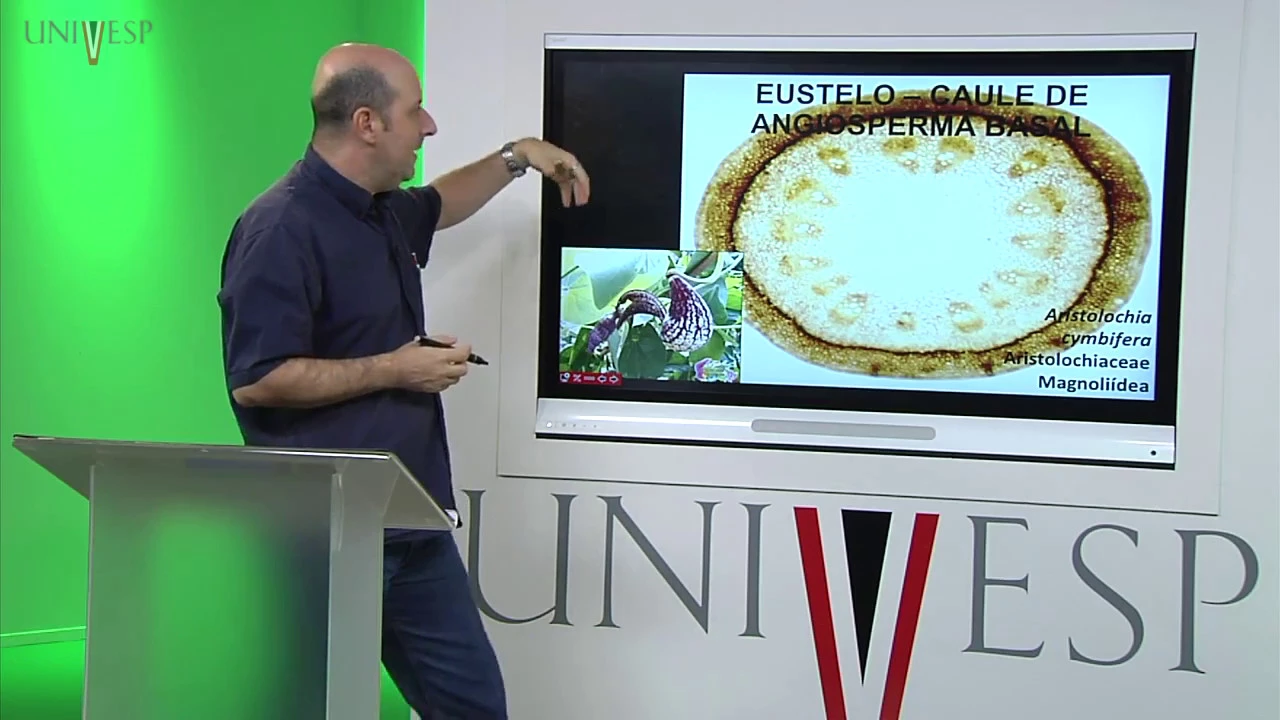 lugar o mais comum o padrão mais comum que é o stelo de eu discutir e doni então temos aqui diversos eixos vasculares aqui com xilema aqui com sue mama e esses eixos vasculares estão ao redor de uma medula neste outro caso caso do girassol nós temos também um típico é otelo com uma medula para informática e 6 x vasculares contendo foi o ema e chilenos nesse caso ainda é um deus tello mas é uma estela de uma já espera basal no caso o papo de peru a aristolóquico já nesse caso nós temos o que nós