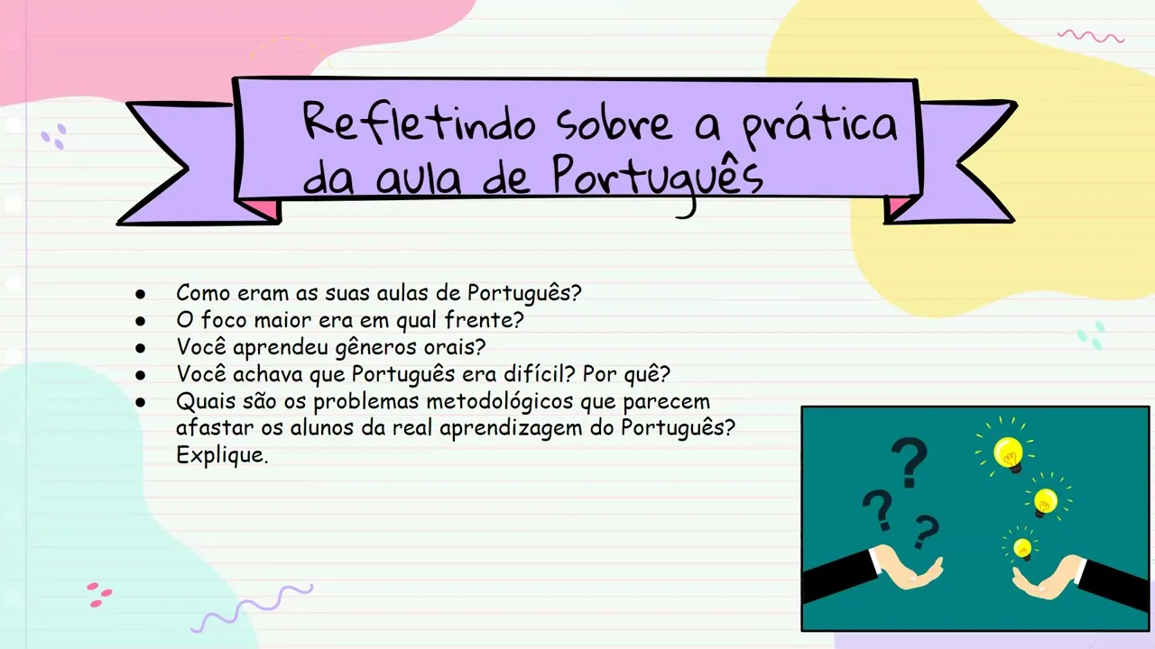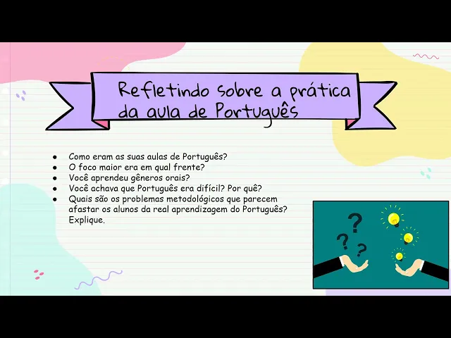 primeiro aponta todos os problemas para que a gente tenha consciência das dificuldades dos problemas sabermos identificá-los para aí sim resolvê-los né então para ela Quais são os problemas das aulas antigas de português como o Jarbas bem apontou provavelmente muitos de nós eh vivenciaram a mesma coisa as aulas eram focadas mais na linguagem formal Principalmente mais em gramática e ortografia né então para ela mantém-se muito uma prática pedagógica reducionista do estudo da palavra e da frase descontextualizada a gente viu a gramática ela é uma sistematização padrão e ela não vai necessariamente estudar contexto quando ela fala