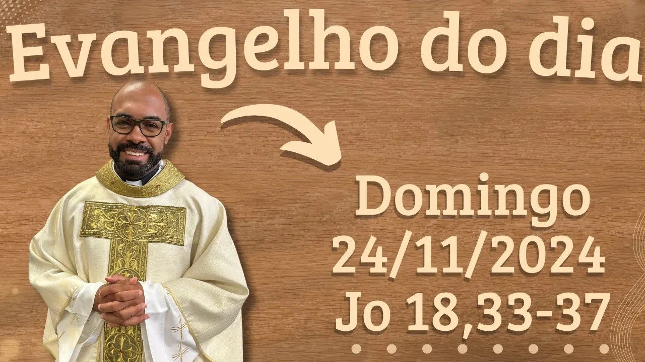 Olá seja muito bem-vindo ao evangelho deste domingo dia 24 de Novembro domingo em que nós celebramos a solenidade de Nosso Senhor Jesus Cristo Rei do Universo a festa de Cristo Rei que marca o encerramento do tempo comum o encerramento deste ano litúrgico próximo domingo já iniciamos um novo ano litúrgico no tempo do advento e o evangelho que a liturgia hoje nos propõe é João Capítulo 18 Versículos do 33 ao 37 o senhor esteja convosco ele está no meio de nós proclamação do Evangelho de Jesus Cristo segundo João glória a vós senhor naquele tempo Pilatos chamou