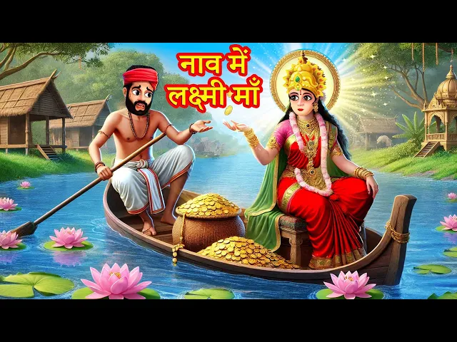 करवा देता हूं वैसे आप रहते कहां हैं मैं नदी पार पहाड़ों पर रहती हूं नाव वाला मन ही मन सोचता है आज सुबह से एक भी सवारी नहीं मिली काम चलाना मुश्किल हो रहा है घर का राशन भी खत्म हो गया है और बच्चों की स्कूल की फीस भी सर पर है उधर जैसे ही देवी लक्ष्मी नाव में बैठी अचानक नदी के पानी में कमल खिल उठे नाव वाला यह देखकर हैरान हो गया अरे यह क्या आपके स्पर्श से नदी के जल में कमल खिल गए हैं लक्ष्मी मां नाव वाले के मन में चल रही