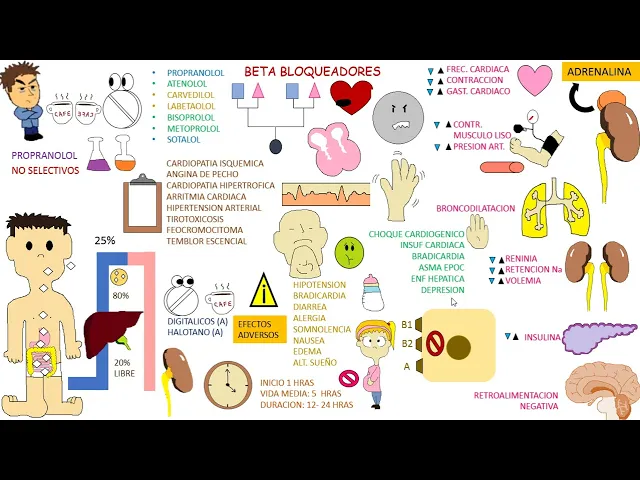 Saludos jóvenes amigos y bienvenidos por petición de uno de ustedes en esta sesión hablaremos de los antihipertensivos en especial de un grupo llamado Los Beta bloqueadores empiezo Entonces los betabloqueadores son medicamentos ampliamente utilizados en la práctica médica en especial son medicamentos utilizados en la consulta externa claro no por no usarse frecuentemente en urgencias carecen de importancia por lo tanto recordemos que siempre entrevistamos al medicamento y cada grupo medicamentoso tiene un representante más popular el cual se utilizan por menores reacciones alérgicas menores reacciones de intolerancia Más biodisponibilidad o más comodidad para el paciente o mayor duración