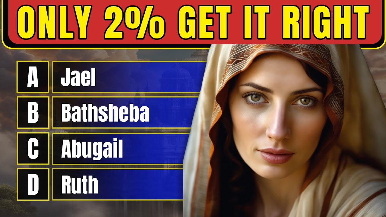guidance question 24 four which woman was known for her bravery in driving a tent Peg through the head of an enemy General a gel B Deborah C Ruth D Abigail you get 10 seconds [Music] that's a the correct answer was JL in judges 4: 21 the passage narrates the account of gel the wife of Heber who fatally strikes an enemy Commander named cesera as Cera lay asleep and exhausted JL approaches him quietly and uses a tent peg in Hammer to drive the peg through his temples into the ground causing his death this event is a