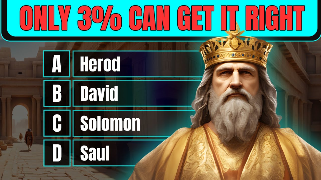 of Life indicating that various activities and events have their designated season the verse reflects the book's overarching theme of contemplating life's meaning and underlines the significance of recognizing the transient nature of human existence question 16 which king of Israel was known for his wisdom and building the first temple in Jerusalem a Saul B David C Ahab D Solomon you get 10 [Music] seconds that's D the correct answer was Solomon 1 Kings 6:1 mentions the beginning of the construction of the house of the Lord in Jerusalem it states that this occurred in the fourth year of