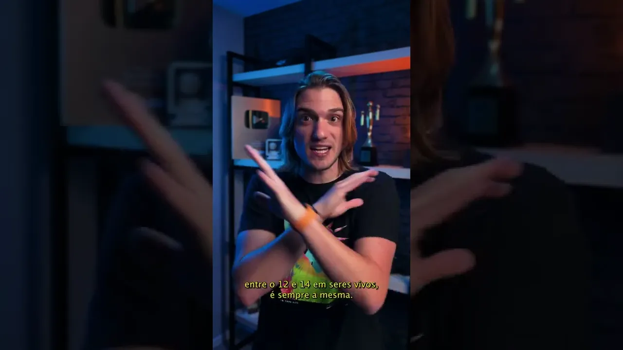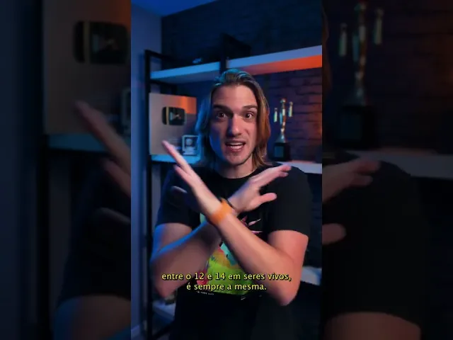 E como que funciona a datação por carbono-14 esse 14 a soma de prótons e nêutrons no núcleo do átomo o tipo mais abundante o carbono-12 que tem 6 prótons e 6 nêutrons do seu núcleo o carbono-14 tem dois nêutrons a mais e ele também é radioativo Mas não se preocupe porque mesmo sendo radioativo a sua quantidade é muito baixa átomos a nossa atmosfera reagem e formam o seu do gás carbônico alguns desses carbono são carbono 12 em alguns poucos são carbono-14 e esse gás carbônico é absorvido por plantas para realizarem a fotossíntese e por consequência