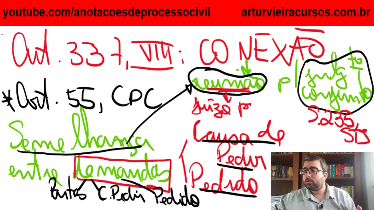e causa de pedir e pedido veja aqui portanto nós não temos demanda idêntica que nada falou sobre as partes basta que haja uma comunhão ou na casa de pedir ou no pedido então um dos tópicos da demanda será muito assemelhado a uma outra demanda vejo nesse sentido que dispõe o artigo 55 então vejam bem estamos tratando do artigo 3 37 inciso 8º tac a conexão ea conexão por sua vez ela está disciplinada no artigo 55 do cpc não 355 nem 255 nenhum 55 mas sim o artigo 55 reputam se conexas duas ou mais ações quando