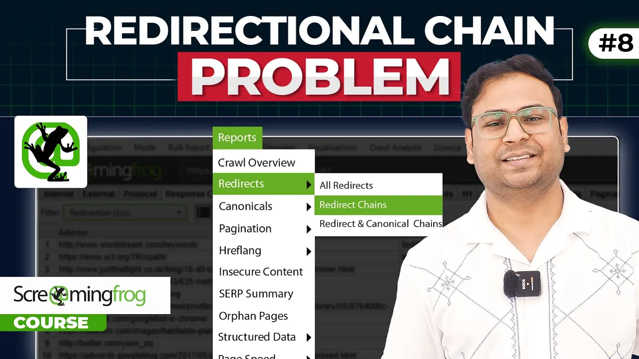 हेलो एवरीवन एंड वंस अगेन वेलकम बैक टू उमर तस्कर youtube's कीर गाइज स्क्रीमिंग फ्रॉग का हम लोगों का कोर्स चल रहा है और आज के इस पर्टिकुलर वीडियो में हम लोग देखने वाले हैं कि स्क्रीमिंग फ्रॉग के अंदर रीडायरेक्शन चेंस की जो रिपोर्ट है वह आप कैसे डाउनलोड कर सकते हैं और फिर किस तरीके से उस प्रॉब्लम को हम लोग सॉल्व कर सकते हैं बट इसको समझने से पहले यह समझना जरूरी है कि आखिर रीडायरेक्शन चेन का मतलब क्या होता है तो देखिए मान के चलते हैं कि कोई एक स्पेसिफिक यूआरएल है a. com ए करके आप इस यूआरएल को ब्राउजर में हिट करते हैं तो यह यूआरएल ना ओपन होकर बल्कि एक रीडायरेक्ट चेन सी बन जाती है सबसे पहले जो रिक्वेस्ट है वो जाती है a. com b के ऊपर और फिर जो रिक्वेस्ट जाती है वो जाती है a.