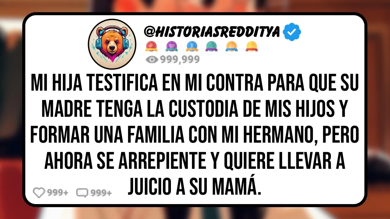 mi esposa hizo que mi hija testificar para que perdiera la custodia de mis hijos y tener una familia con mi hermano pero mi hija se arrepiente y quiere llevar a su madre a juicio es mi primera vez publicando aquí Así que Disculpen cualquier error de formato soy un hombre de 42 años y llevo 6 años divorciado mi exesposa Pam que tiene 41 años obtuvo la custodia de nuestros tres hijos durante el divorcio Aunque me estaba engañando sabía con certeza que la única razón por la que quería la custodia total de los niños era que era