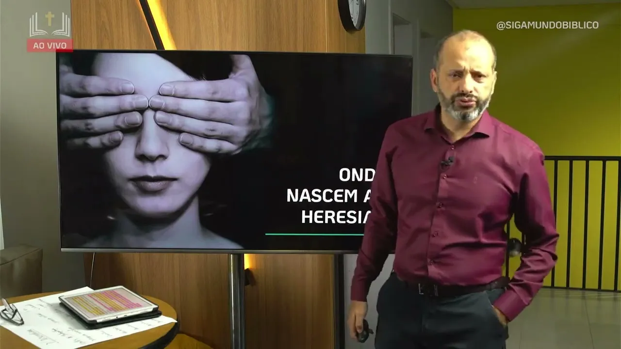 um significado você está fazendo necessariamente hermenêutica mais uma pausa lembra a gente o que que é neurótica em neute que é o processo de interpretar resta saber se você está interpretando bem ou se você está interpretando confuso e está interpretando errado e aí eu fiz uma próxima provocação é a onde nascem as heresias essa pergunta para a gente é fundamental porque a as heresias são falhas de interpretação né quando a gente vê um texto ou seja em toda a realidade EA gente interpreta mal é a gente está cometendo erros e esse tem consequências eu me
