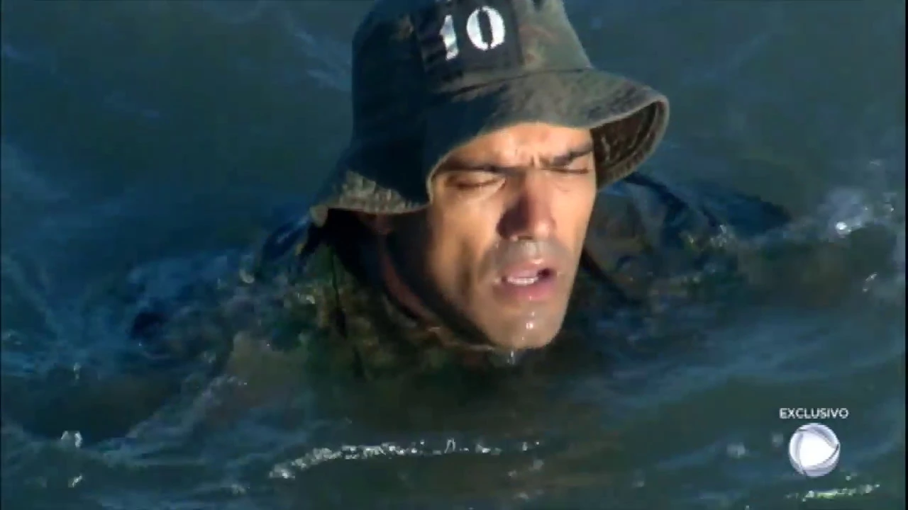 Alguns candidatos à Tropa de Elite já apresentam sinais de cansaço e de hipotermia, a queda de temperatura do corpo. Para piorar, a água está infestada de águas vivas. O aluno tenta se desviar de uma.