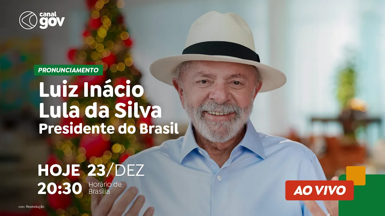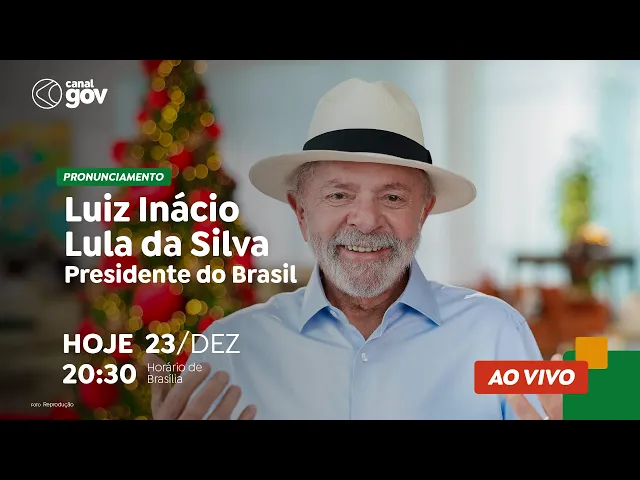 forma-se nesse momento a rede nacional de rádio e televisão para o pronunciamento do Presidente da República luí Inácio Lula da Silva minhas amigas e meus amigos hoje eu gostaria de conversar com cada uma e cada um de vocês você que está em casa com sua família você que trabalha no campo no comércio na indústria que faz a comida chegar n nossas mesas que trabalha na saúde nas escolas nas oficinas você estudante você que cuida da casa você empreendedor todas e todos vocês que ajuda a construir esse grande país o natal é um bom momento para
