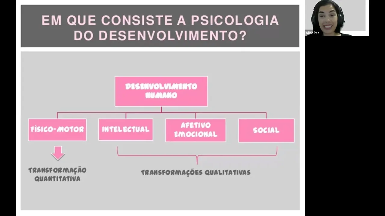 tem assunto que eu tô falando que paraa Raquel ó ela já cansou de ver de ouvir de escutar mas para Janaína é Coisa nova e as experiências é o grande medidor no caso da docente de quem vai ter mais probabilidade de acomodar aquele conteúdo ou não porque as experiências precisam estar ali para te fazer absorver melhor aquele conteúdo certo Então olha só quando a gente apropria essa variável do Desenvolvimento Infantil que nós precisamos de um corpo o físico a gente tá falando de Transformações quantitativas estatura idade e de uma área cerebral chamada cognitiva responsável pelo