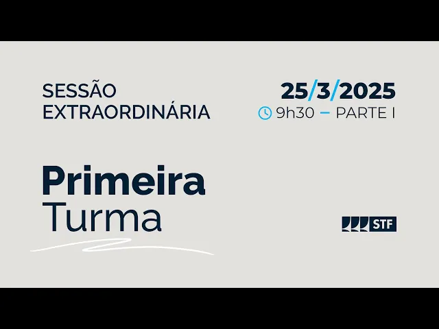 Declaro aberta a primeira sessão extraordinária da primeira turma de 25 de Março 2025 cumprimento a ministra Car Lúcia o Ministro Luiz fux Ministro Alexandre de Moraes Ministro Flávio Dino cumprimento Procurador Geral da República senhores advogados advogadas Serv e todos que nos acompanham passo a palavra à senhora Secretária para leitura da ata da sessão anterior ata da terceira sessão ordinária da primeira turma do Supremo Tribunal Federal realizada em 18 de Março de 2025 presidência do Senhor Ministro Cristiano zanim presentes a sessão os senhores ministros Carmen Lúcia Luiz fux Alexandre de Moraes e Flávio Dino subprocurador-geral da