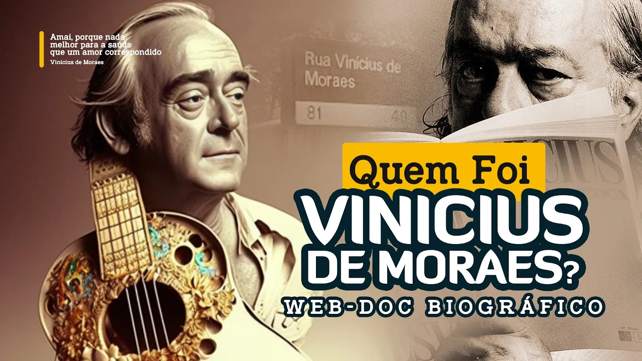tendo como cenário e ambiente ideal para suas inspirações musicais e artísticas as belas fotografias naturais da cidade maravilhosa do Rio de Janeiro serviram como fonte de inspiração para o desenvolvimento do escritor Poeta jornalista crítico de cinema e Diplomata Vinícius de Morais [Música] Marcos Vinícius da Cruz de Melo Moraes nascido no dia 19 de outubro no ano de 1913 passou seus primeiros anos de vida no bairro do Jardim Botânico na zona sul do Rio de Janeiro ao longo dos seus quase 67 anos foi responsável por um grande leque de produções literárias e musicais também teve um
