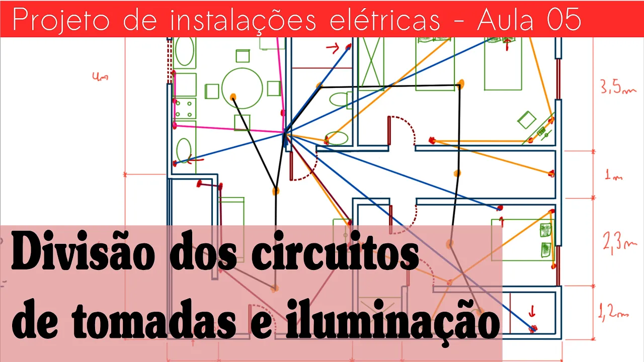 nós começamos aqui mais uma aula do nosso curso de projetos de instalações elétricas estamos ainda na época dos projetos residenciais e vamos agora para divisão dos circuitos em nossa conta na sala de hoje mas antes disso convido você a dar uma olhada lá no meu blog www. com. br barra blog essa semana inclusive publiquei um artigo lá que trata a respeito do comparativo entre a conexão y e delta de bancos trifásicos capacitivos tanto tanto para fins de regulação de tensão quanto para fins de correção de fator de potência vá lá dá uma olhada que além deste artigo tem mais outros artigos interessantes para você seguindo o nosso nossa forma de aula aqui nosso formato de aula tem uma introdução o desenvolvimento eo resumo a introdução de hoje ela é bem curta afinal de contas na introdução de hoje eu só preciso te avisar que a norma que nós não e para fazer o para estabelecer moral norma que estabelece os critérios utilizados para o exame circuitos é a norma nbr 5410 é aqui faremos uso na aula de hoje então vamos ao desenvolvimento da nossa aula de hoje e o desenvolvimento é na verdade baseado nos critérios da norma lembrando que ainda hoje continuaremos como com a mesma a mesma metodologia de antes vamos fazer divisão do circuito dessa planta que estamos fazendo projeto já faz algumas aulas aqui eu tenho os critérios eu vou falar brevemente dos critérios mas prefiro voltar eles quando eu tiver fazendo o próprio exemplo a própria divisão no circuito na planta que está aqui ao lado aqui eu vou falar brevemente a respeito dos critérios o primeiro deles é tomada criada para alimentar equipamento concorrente de maior de mais de 10 amperes deve ter circuito exclusivo nova chama de independente as duas palavras juntas dizem bastante ou seja dimensionou um tom eu ia corrente calculada de corrente de projeto deu mais de 10 amperes o circuito dessa tomada não pode ser dividido com não pode ter nenhuma derivação para em outro lugar só pode alimentar essa tomada ponto de tomada de cozinha copa cozinha lavanderia e similares devem ser atendido por circuitos exclusivos para alimentações alimentação desses locais ou seja se você tem uma cozinha e colocou tomada e na cozinha você não pode pegar os pontos de tomada dessa cozinha que estão num circuito pegar esse circuito derivar para iluminação por exemplo você não pode mesmo que seja dominação da própria cozinha você não pode pegar os pontos de tomada da cozinha e fazer uso por exemplo com a sala significa dizer que desses ambientes aqui os circuitos dele deve ser exclusivos para eles eles não podem ter nenhum tipo de divisão de thomas circuito de tomada para outros locais e se a ester está aqui essa asterisco está aqui porque ele a ponte e volta a esse assunto e em locais de habitação que o nosso caso afinal de contas estamos tratando de projetos residenciais não é necessário iluminação e tomadas teve obrigatoriamente circuito diferentes ou de outra forma você pode perfeitamente ter iluminação tomada no mesmo circuito isso não é problema desde que você obedeça alguns critérios o primeiro critério é a corrente no circuito tem que ser menor ou igual a 16 amperes ou seja você pegou por exemplo a sala pegou a sua sala fez o projeto e colocou a iluminação e as tomadas no mesmo circuito então um mesmo condutor vai lá e vai alimentar tudo isso aqui a caminho da corrente e vai ser o caminho as tensões maiores eles estavam paralelo na iluminação nas tomadas com o mesmo circuito joia fez as contas do das correntes e deu 17 amperes pronto não se não pode fazer o uso desse circuito uni a combinação e tomada se você quiser fazer uso desse circuito junto significa dizer que a corrente treinada tem que ser menor ou igual a 16 mas você pode perfeitamente ter na sala por exemplo um circuito somente de tomadas esse esse ciclo de somente tomada de 17 amperes não é problema porque só tem tomada e você pode ter um circuito 17 amperes para iluminação desde que tenha apenas iluminação o que você não pode é ter um circuito com corrente maior do que 16 amperes e ter tomado iluminação no mesmo circuito outro critério que deve obedecer para poder ter iluminação e tomadas no mesmo circuito é no caso não só lendo aqui fica mais fácil de explicar quando eu tiver lendo caso um circuito alimente tomado iluminação que é o nosso nosso exemplo do nome aos tópicos do momento esta última ou seja a iluminação não pode estar no único circuito vamos supor que você pegou a sua sala e fez o projeto e colocou no seu projeto um único circuito para tomada e para iluminação fez a conta deu 9 amperes aí você fala poxa tem uns 7 amperes de sogra vou pegar lá a iluminação desse meu apartamento e colocar no mesmo circuito então você teria as tomadas da sala e mais toda iluminação do apartamento no ônibus circuito obviamente teria tomado específica para os equipamentos compre mais 10 amperes que foram os primeiros e tomar específica para este tipo específico de hopper para para os quartos por exemplo mas voltando ao caso você colocou tomadas da sala mais toda iluminação do apartamento no único circuito é fez as contas e deu 13 amperes aí você vista a joia tá menor do que 16 então pode não se não pode você só pode ter tomada iluminação desde que a iluminação não esteja integralmente nesse circuito assim você pode perfeitamente ter tomado ilumine e desde que nem toda a iluminação seja alguma parte de iluminação tem que estar no outro circuito separado então a gente volta a tratar disso quando eu fizer o projeto na planta um caso análogo ao anterior é esse aqui ó caso um circuito alimente tomadas iluminação é o caso que está tratando no momento as tomadas não podem estar no único circuito aqui nas tomadas no porta no circuito já exclui obviamente esse caso aqui ó esse aqui você já sabe que tem que ter circuito separado para 
