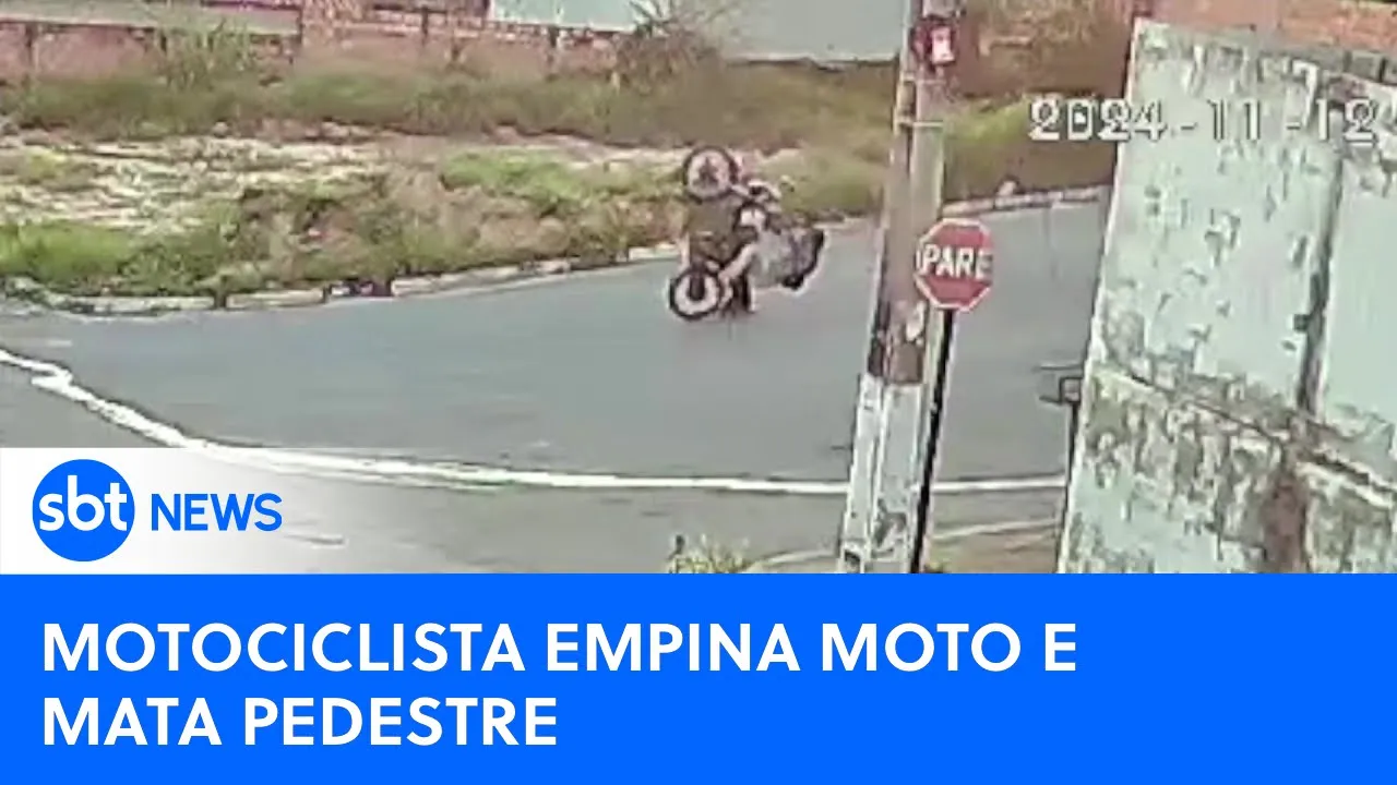 Olha gente um idoso morreu após ser atropelado por um motociclista que estava empinando a moto é muito perigo flagrante que eu trago para vocês no SBT News imagem de uma câmera de segurança mostra o momento que Valdivino Ferreira da Silva lauar de 51 anos Desce a rua uma moto que segue logo atrás no mesmo sentido atropela o pedestre Observe que a moto está com a roda dianteira levantada quando atinge Valdivino o motociclista chega próximo a vítima que permanece imóvel no chão mas se afasta monta na moto e Foge Valdivino chegou a ser socorrido pelo Samu