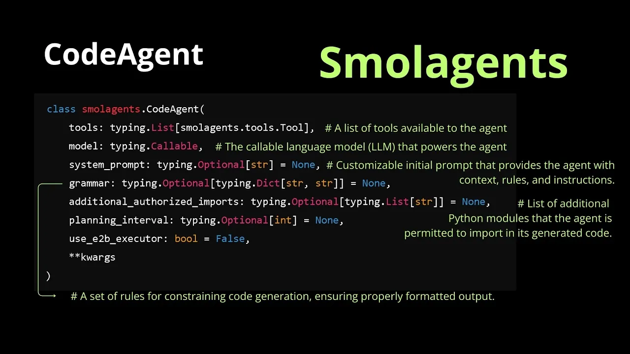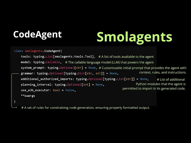 0 it is open source you can use it immediately so if you want to learn 2025 now and you want to say I want to implement now operational agent and you say is there a simple library that is on the latest level of technology in the implementation and where I have examples and a beautiful explanation I think you should definitely have a look at small agents is it fair to all the other implementations where you have seen here so many beautiful courses and everything you know this is the latest Ami technology implemented here knowing all the problems and I will show you here now the technology because especially if you're working here on a scientific domain this will have significant advantages for you let's just jump right into it so we are here at day one of those small agents so therefore this is really the very beginning but there are some beautiful documentation there's some beautiful examples so yes let's have a look together I just want to give you here in 30 seconds why I like it because we have a rather compressive guide that is available if you want to learn you about the small agent schema for building running and and this is the nice part customizing here your intelligent agent in a real simple way this here you can go with a minimal agent configuration or you can manage multi-agent system in a way that is really exceptional of course you can create custom tools for all your agents you can have a task hierarchy you can have specialized agent and I want to show you this because if you have more complex task this is really nice for some particular reasons and yeah you have visualization interactive communication because yeah it's a Radio based interface available for you right at the start you have a real precise task guidance because there is a special um system prompt to two integration I want to show you but there is something nice you can have here an agent adaptability regarding the tools that you will choose you can build a hierarchical multi-i just system right out of the start you can specialize for all the different subtask and whatever optimize for performance and research usage and you can create and integrate custom tools easily and especially if you like coding and or you have an a scientific application and you have custom tools you need custom tools this is so easy to do this and I want to show this to you we have gr showed you this yeah you visualize here the agent reasoning the execution and the memory retention enabling here a beautiful intuitive debugging if you remember your Lang chain at the very beginning there was a little bit of a trouble but this is now all implemented right out of the start and if you do some specialization maybe not in this video but there is something like a managed agent object that I will show you and this encapsulate here to build agent with specific group rules and specific tools there's a high degree of specialization also if you want to have here with memory and if you remember my last two three videos where I showed you there we were working with some memory optimization yes exactly this is now the right tool for this so let's start here with an introduction and here we go and you know hugging face is so nice they thought hey what our agents you know come on let's start from the beginning and they say hey our agents our small agents are are multi-step intelligence so they have an llm at the core agents so it's not just rule-based agents and they are designed to perform task through the react framework and you notice this is the reasoning and acting framework step by step so each step consists of a sort by our llm followed by a specific tool call by our llm and then the execution with intermediate observations feeding into the action now they Define here if you want two main classes I want to introduce you but first we have the multi-step agent the base class and then we have the managed agent for multi-agent system but I saying let's stay with the base class as a first start and we have multiple models that we can have here now and they start with three so we can use hugging phase inference API that I just showed you at the beginning of this video for an easy integration everything is on the hugging face platform you don't have to do anything everything is done unloaded automatically for you this is just beautiful if you are going with the Transformer idea you remember the old transformer. agent this will now this is now depreciated now we go here with this form of small agents so you can use the Transformer Library locally and if you go with light llm more than 100 miles are already supported with light llm models so user can also in addition Define custom models to fit specific needs in a very simple procedure and this is why I would say hey all this other agent implementation one and a half year ago a year ago half a year ago you know they were only going another step another step better more performance easier and now I know it is kind of unfair to show you this but this is the the reason why I have this Channel I want to show you the very latest technology and this is now available for you so I kind of feel sorry to the other models but hey if you want to go with the latest with the most and I will show you how you can optimize this for your custom models I think and it's so easy so why not show you this here it differs from the traditional agent based system you know the other systems I just showed you it has a better flexibility a better multi-agent cooporation better modularity we have an enhanced safety feature interactivity always is there but let's start now here with the multi-step agent with the base class and more or less if you start I would say you have to focus on two agents the code agents and the tool calling agents and you know what just between you and me the beauty the real beauty is here in the code agent and then we have our beautiful tool calling agent connect to the internet connector in the database everyt