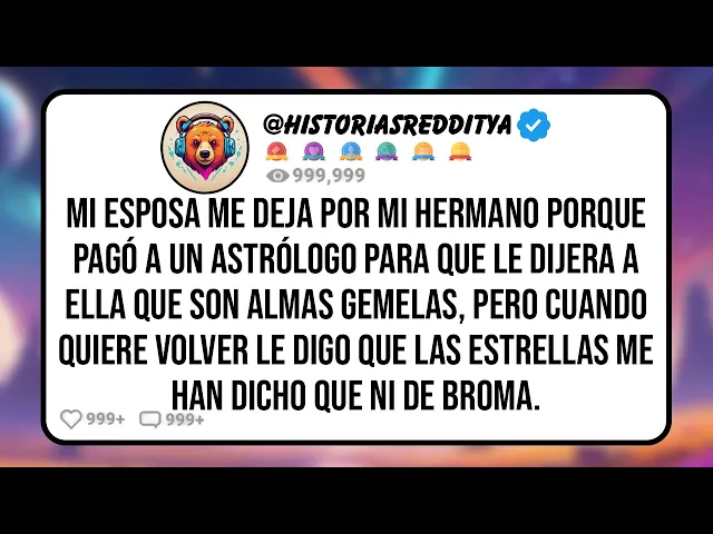 mi esposa se va con mi hermano porque un astrólogo se lo dijo pero cuando regresa porque fue un plan de mi hermano le digo que mi estrella ascendente me ha dicho que no así que yo de 35 años estaba casado con mi esposa de 34 durante 7 años pero habíamos estado juntos 10 teníamos mucho en común a ambos nos encantaba viajar cocinar y ver series y hasta compartíamos metas similares en la vida el único punto donde no coincidíamos del todo era en nuestras creencias siempre he sido una persona de ciencia y lógica me gustan los